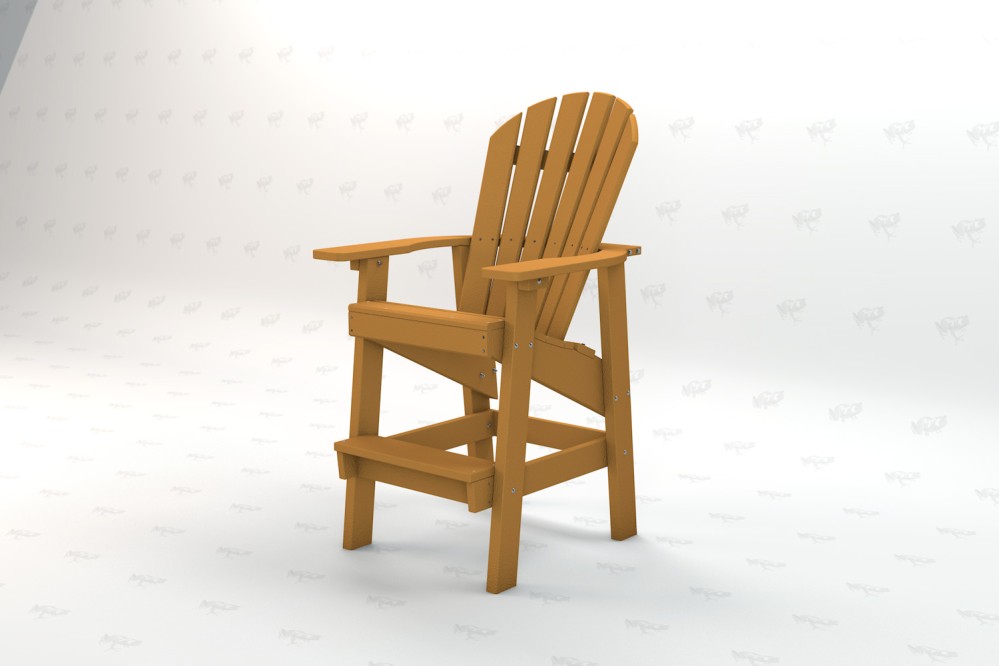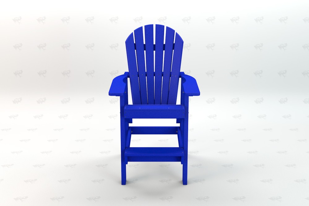 Made from UV stabilized resinwood and stainless steel hardware, the Clearwater Patio tall Adirondack chair offers maintenance-free seating with maximum comfort. Each seat features a 6 slatted contoured back reflecting a traditional style and providing extra comfort over a traditional Adirondack chair. With a raised seat and foot rest, this raised Adirondack chair is ideal for taller patio railings, raised patio & bar tables, or as a lifeguard chair at recreational