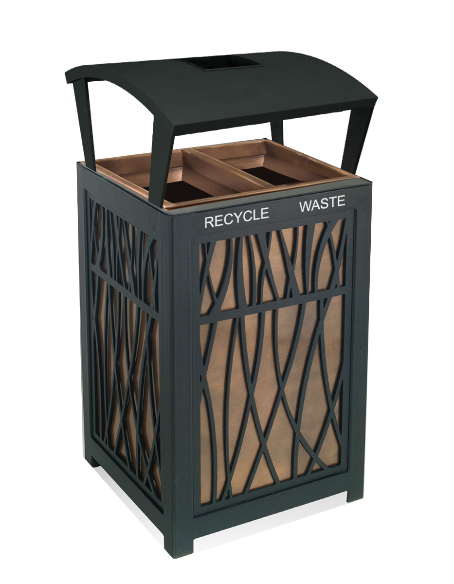 15 - 46 Gallons per stream1 - 3 CompartmentsChoose from many top-quality finishes, including sleek 304-grade stainless steel, copper, brass, and aluminum. In addition, many of our commercial recycling containers are fully customizable to complement modern or contemporary decor, including office areas, boardrooms & break rooms.