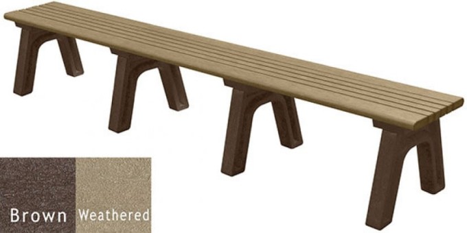 • Recycled plastic outlasts wood, concrete, and plastic-coated metal for durability