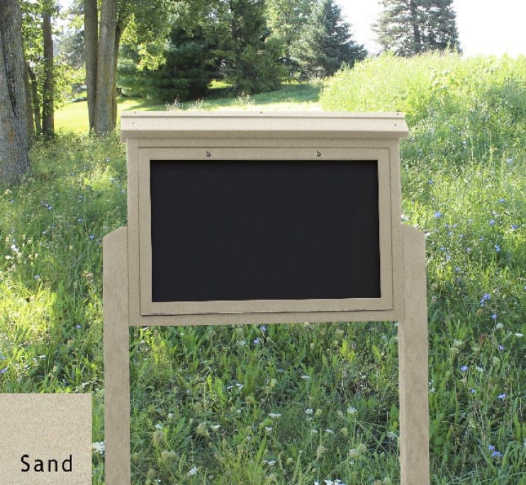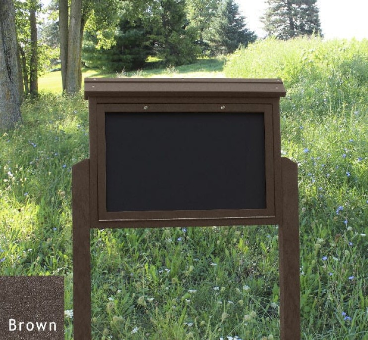 For strength and durability, this message center is one sided and constructed of eco-friendly recycled plastic lumber and stainless steel fasteners. It also features a polycarbonate window that’s scratch resistant and shatter proof.