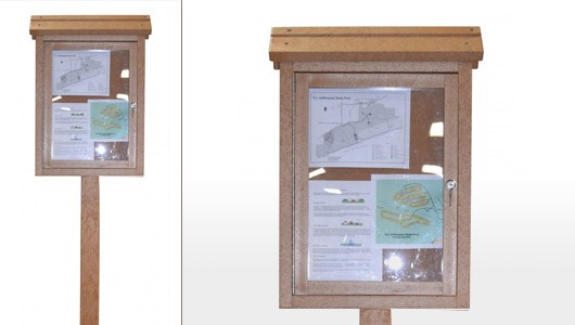 Waste Wise Products’ small double-sided message centers are a great way to maximize the posting and notification space. Manufactured from 100% recycled plastic for maintenance free durability. For added longevity this unit features all stainless steel hardware and tough & shatterproof polycarbonate window.