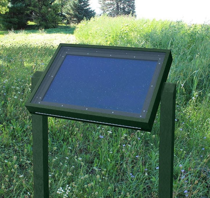 Quickly view site-seeing information, trail maps, literature, museum documentation and more with our Specialty Viewing Message Center. No need for an added padlock because there are two stainless steel, weather resistant key locks installed to secure contents. This message center features water resistant sealed acrylic glass, and a weather resistant & washable recycled rubber tackboard that lasts longer than cork.