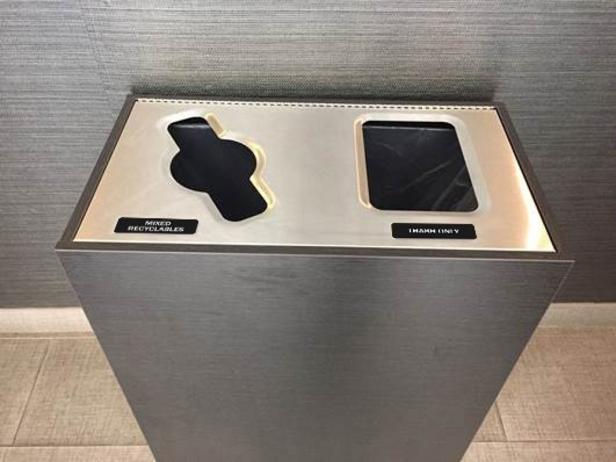 Choose from many top-quality finishes, including sleek 304-grade stainless steel, copper, brass, and aluminum. In addition, many of our commercial recycling containers are fully customizable to complement modern or contemporary decor, including office areas, boardrooms & break rooms.