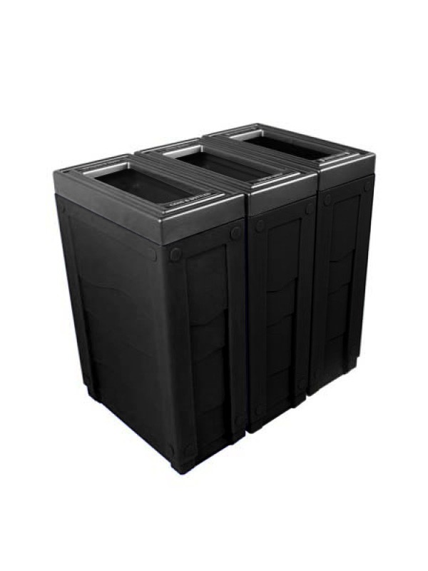 The Evolve Triple Cube Slim recycling station offers a unique style for multi-functional waste and recycling collection at an economical price. Each Evolve receptacle can be utilized as stand-alone receptacles or gathered together as a central recycling station. These receptacles feature a thermoformed ABS lid with a brushed pewter film, giving it a stylish touch for any interior space.