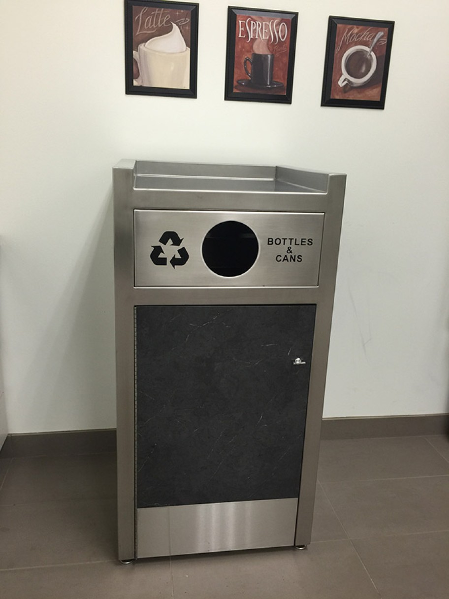Looking to rejuvenate or add a touch of class to your corporate cafeterias? The Lenox Tray Manager offers a built-in tray holder, large capacity, durability & a stylish stainless steel and laminate finish. This highly scratch and dent resistant recycling station is designed to ensure longevity in any high traffic area throughout your facility.