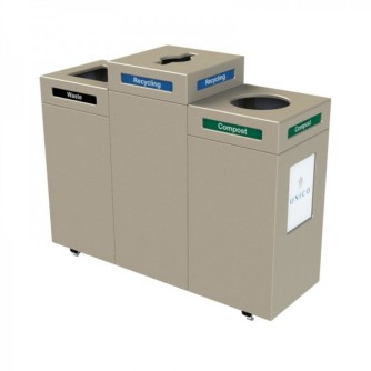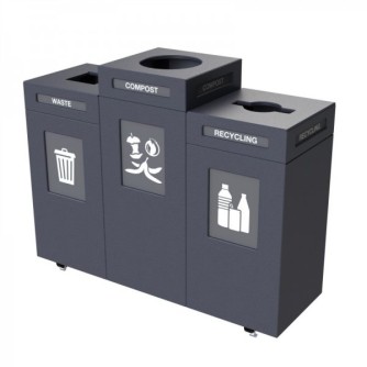 Enhance your architectural design or corporate brand with our high-end 3 compartment recycling bins. These recycling bins offer all the benefits of dual-stream recycling bins, with the additional compartment for sorting recyclables, organics or trash.