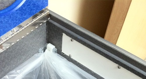 A plastic insert for indoor top service units. This insert is designed to catch any spills due to bag tears.