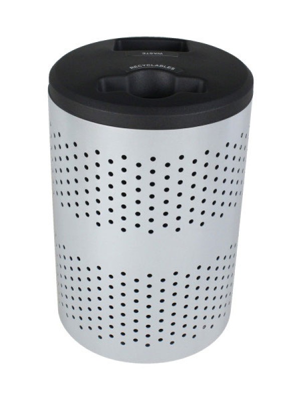 • Colored liners show through the metal design, making it easy for users to identify the waste stream