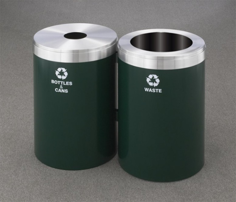 Each RecyclePro is double wall fire-safe; built with recycled aluminum. Choose from satin aluminum or tarnish-proof satin brass. Alternatively choose one of many powder coat colors; finished on recycled galvanized steel. Also, mix and match each waste stream with any of the aforementioned finishes.