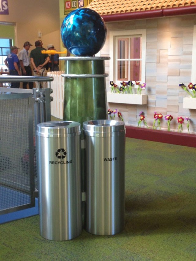 Our superior stainless steel, laminate, and steel finishes make our tray top recycling stations ideal for any office lunchrooms, cafeterias, and food courts.