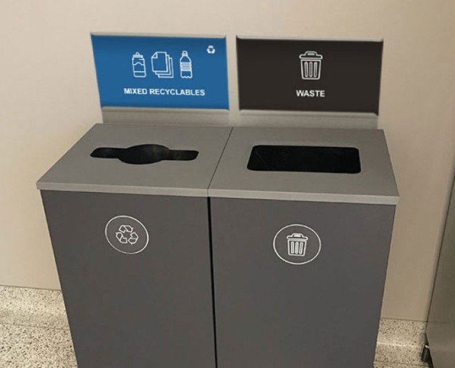 From our best-selling single stream receptacles to our double, triple or quad stream recycling stations, our waste & recycling receptacles are ideal for any commerical interior design.
