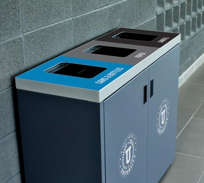 Enhance your architectural design or corporate brand with our high-end 3 compartment recycling bins. These recycling bins offer all the benefits of dual-stream recycling bins, with the additional compartment for sorting recyclables, organics or trash.