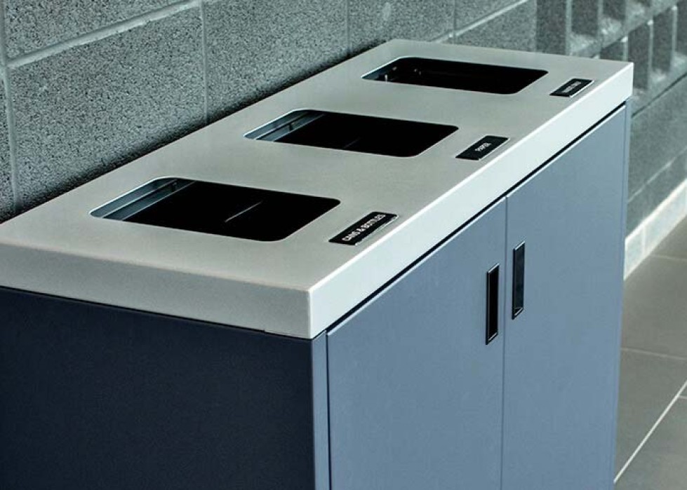 Our superior stainless steel, laminate, and steel finishes make our tray top recycling stations ideal for any office lunchrooms, cafeterias, and food courts.