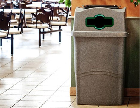 The Wave Series is the best recycling container for food courts, cafeterias, restaurants, and fast-food chains. The Wave features a secure space on the lid for nesting food trays, a side-hinged lid for easy collection, and a heavy duty liner for easy removal and cleaning. Custom opening shapes, colors, and labels are available. Openings are available on 1, 2, 3 or all 4 sides, and the top can have an opening or can serve as a collection point for cafeteria trays. The Wave is also available as a double stream recycling container.