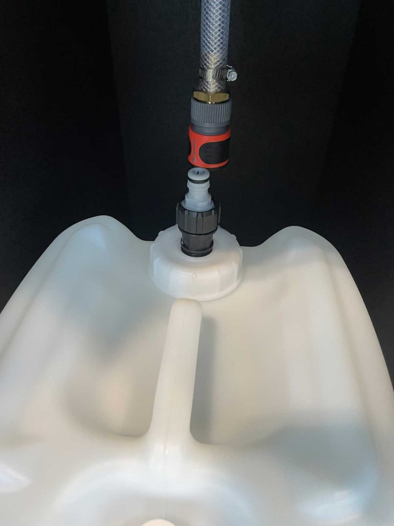 Quick Disconnect: Custodial-friendly feature allowing for easy and efficient servicing of the jerry can.