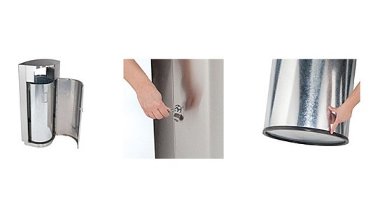 • Removable 20 gallon galvanized liner with built-in handle that easily slides out for disposal